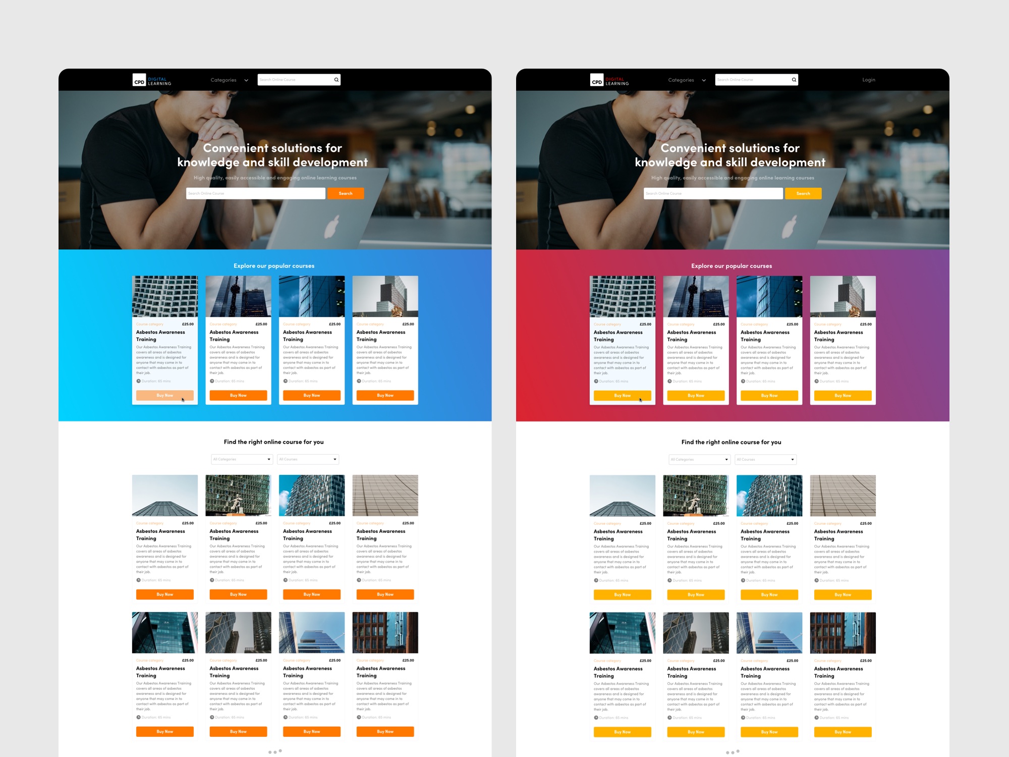 Following the sign off of the structural wireframes, these concepts were moved into the visual design stage, where branding was applied and the first version of CPD Digital Learning was presented to the client.