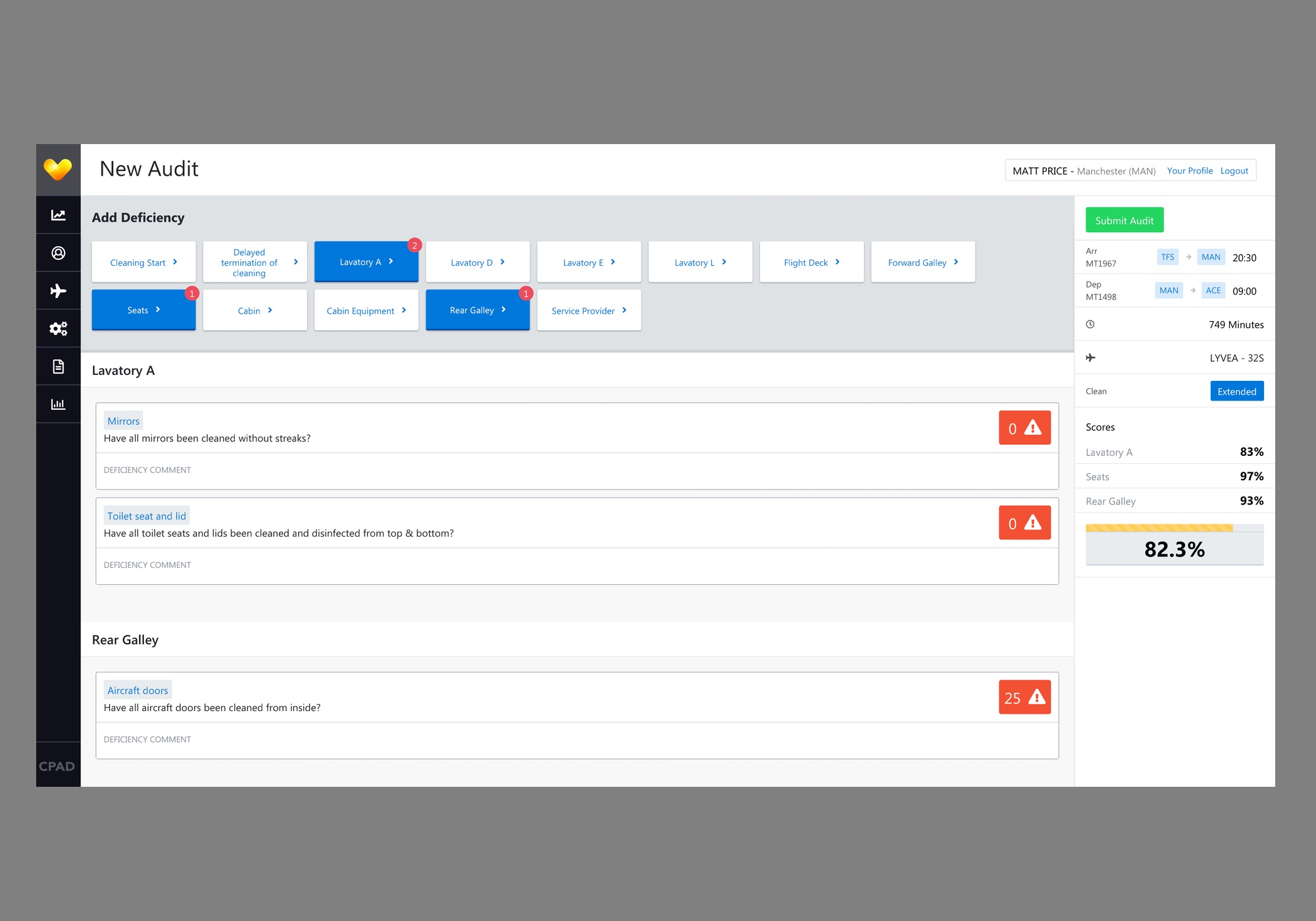 We were approached by Thomas Cook Airlines Group to create a platform for their Cabin Presentation Team throughout the United Kingdom, Germany and Scandinavia. The platform would be developed to audit aircraft cleans throughout their fleet, providing detailed analytics and scoring against cleaning efficiency at all bases.